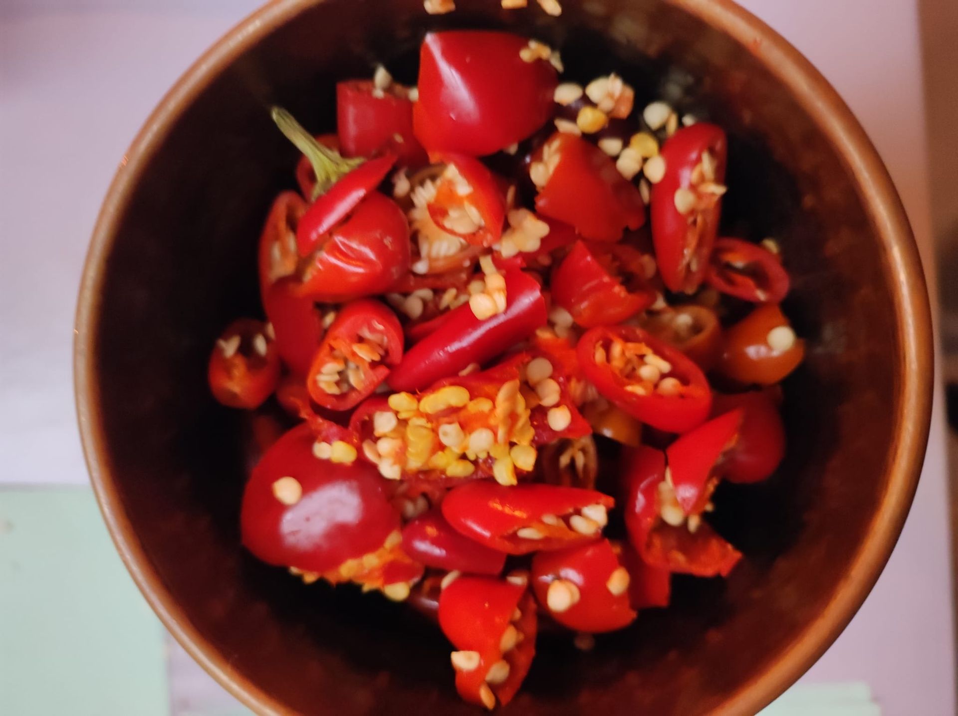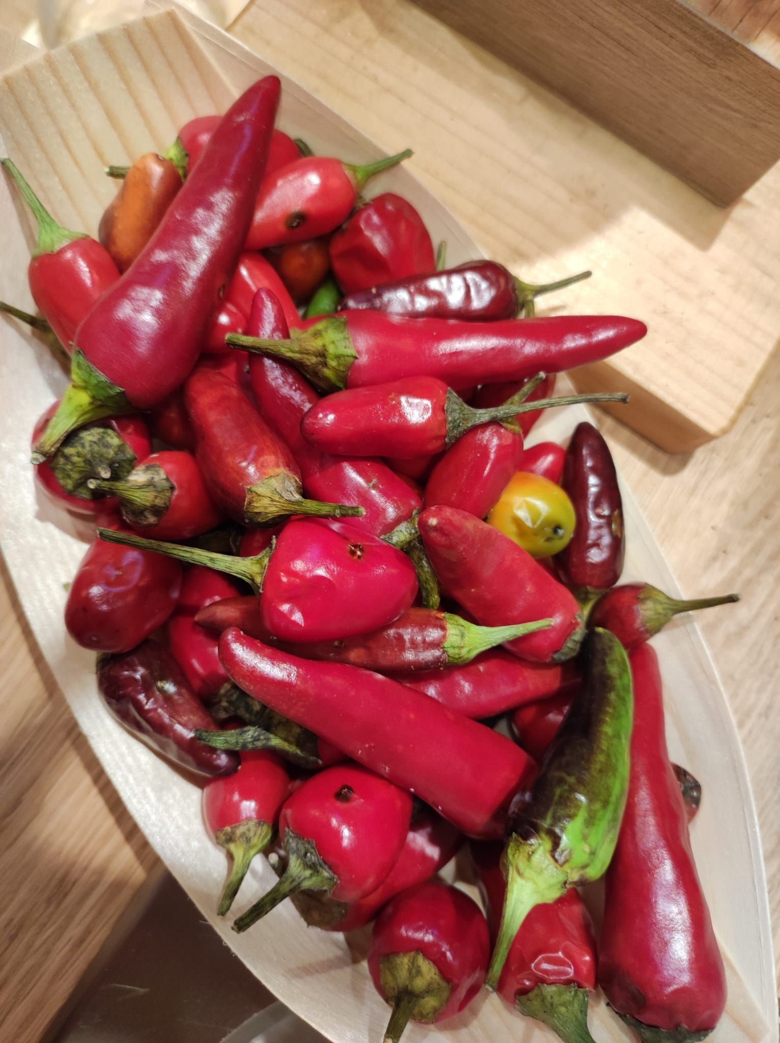 Chillies können natürlich auch gegrillt, geröstet oder fritiert werden. Wir legen sie gerne getrocknet in Omega3-Öl ein (Erfurter Ölmühle), oder mahlen sie zu Chilli-Pulver.