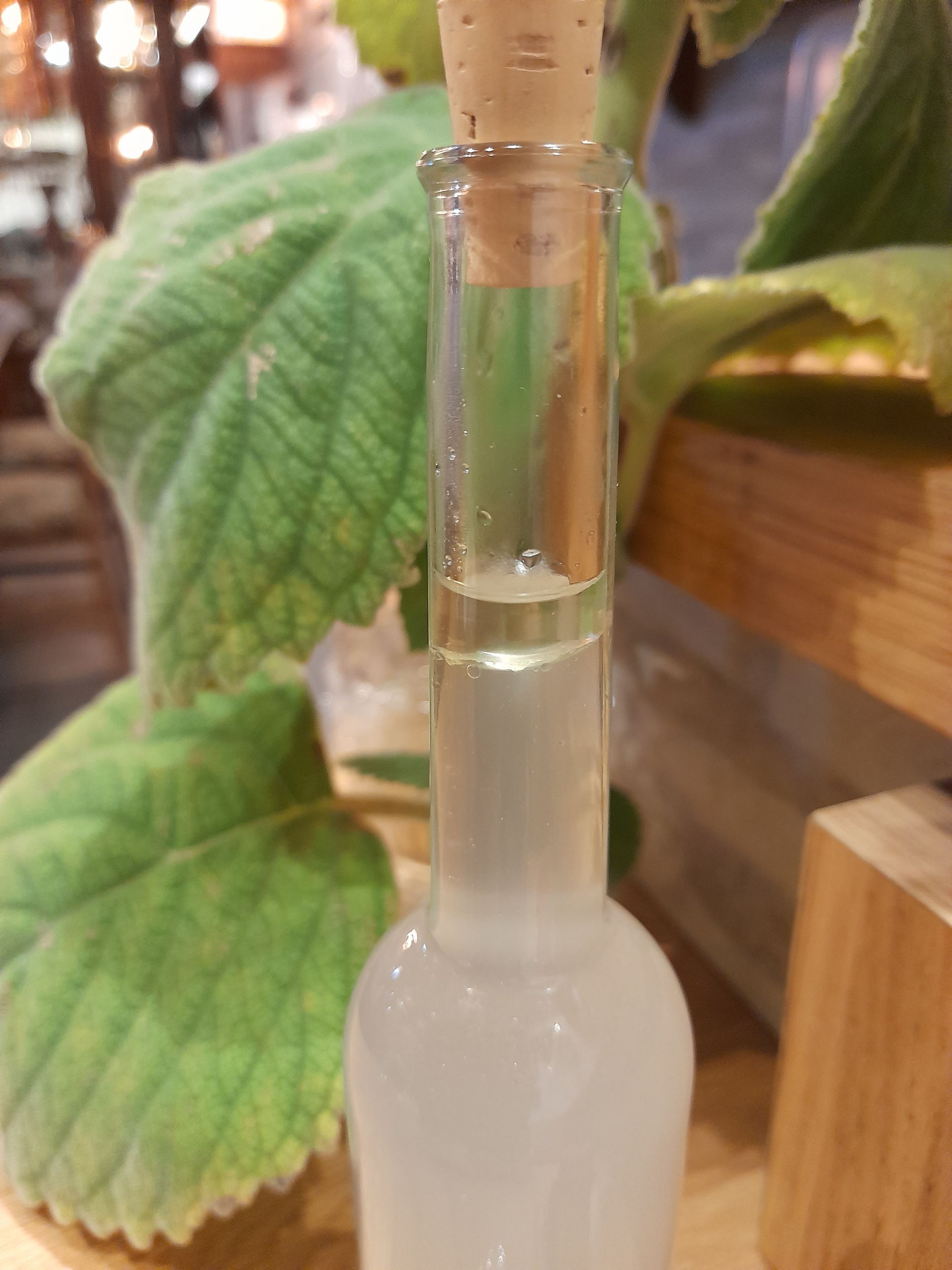 Bei der Destillation erfüllt ein traumhaft-frischer Zitrusduft unseren Raum und wir können aus 120g Blätter, sogar 0,8ml ätherisches Öl gewinnen. Damit liegt die Ausbeute bei 0,7% was uns überaus zufrieden stimmt.